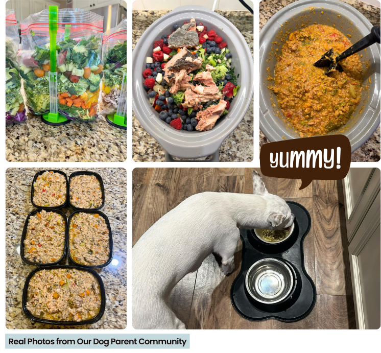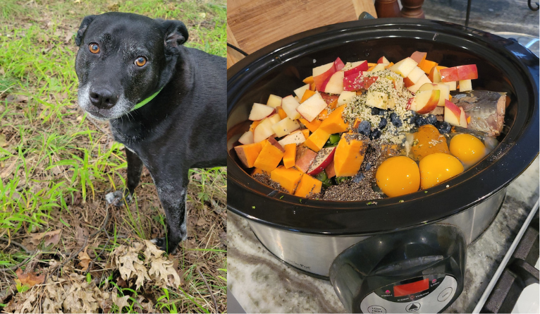 A simple, step-by-step method to feed your dog fresh, balanced meals — using your crockpot and just 15 minutes of prep time.