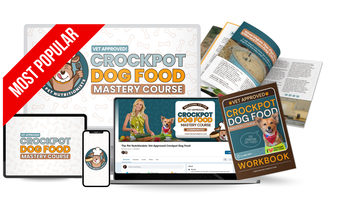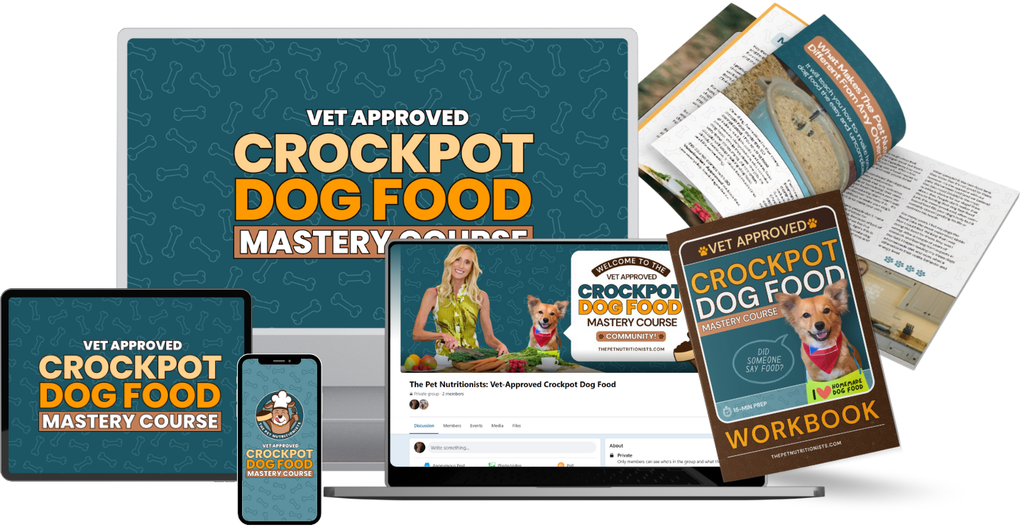 Join hundreds of dog parents inside the Vet-Approved Crockpot Dog Food Mastery Course and finally feel calm, confident, and proud of what you’re feeding your dog.