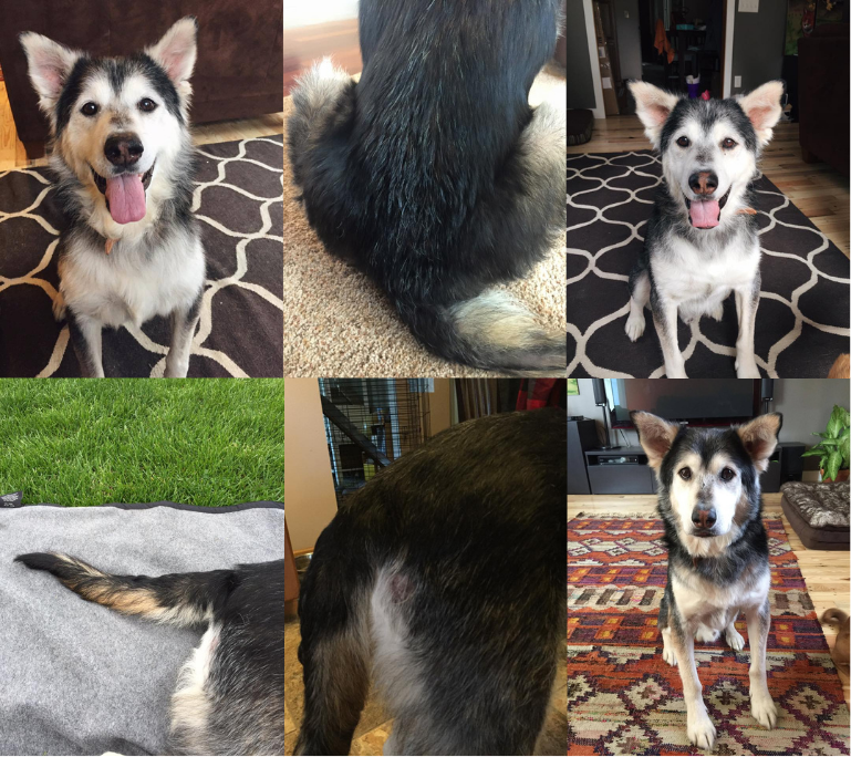 Coat (and tail!) was coarse, sparse, and patchy with significant hair loss.